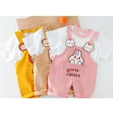 3. 루라줌) 아기 유아 아동 6개월 돌아기 남아 여아 동물 곰 사자 토끼 여름 반팔 티셔츠 여름 멜빵바지 세트 점프수트 상하복세트 상하세트 어린이집 등원룩 코디