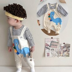 7. [보들보들한 소재로 민감함 피부의 아이에게 강력추천!]귀여운 블루색 공룡 다이노 디노 포인트 유아 우주복(66-90사이즈)등원룩 활동복 캐주얼룩 귀염뽀짝 공룡 할로윈 코스튬 추천!