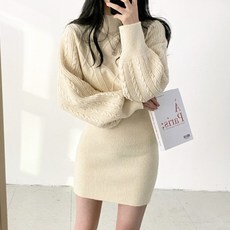 15. [레티고] 꽈배기 목폴라 니트 미니 원피스