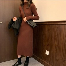 2. 여성 캐주얼 슬림핏 목폴라 니트 롱원피스 8color