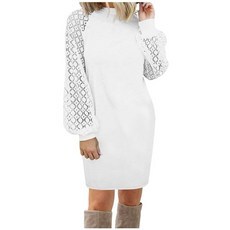 14. 니트미니원피스 꽈배기 니트 겨울 하객 반목 폴라 롱 미니 니트원피스 가을 여성 드레스 섹시한 레이스 스티치 긴 소매 느슨한 드레스 가운 우아한 캐주얼 와플 드레스 mujer